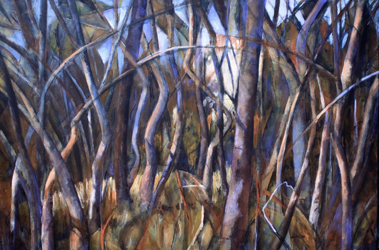 through the casuarinas 152 x 101cm Published May 1, 2012 at 1280 × 843 in Gallery Doorway through the casuarinas (152x101cm) The dynamic of walking through a forest, the shifting light, the space. Pastel, clear acyrlic on primed canvas. Size152cm x 101 cm