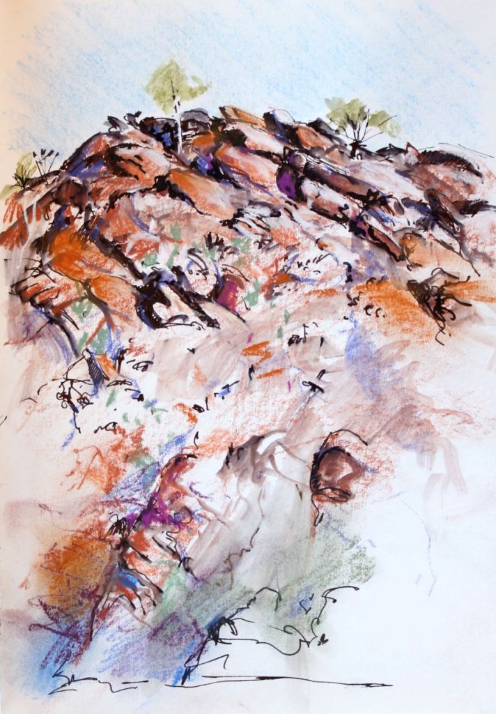 Hill in Alice Springs Published August 1, 2012 at 890 × 1280 in Larapinta Trail Sketchbooks No need to travel far to see the colours of this place Like Loading...