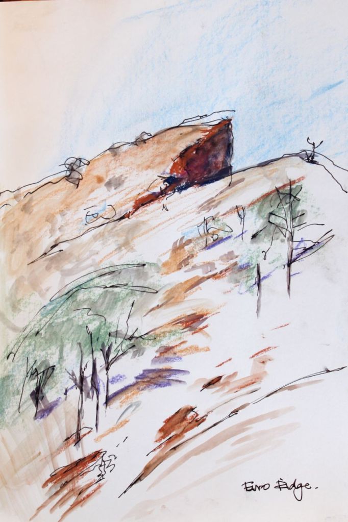 Euro Ridge Published August 1, 2012 at 853 × 1280 in Larapinta Trail Sketchbooks After a long walk over gently undulating country, we are at euro ridge. Like Loading...