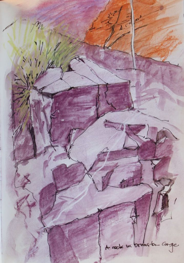 A rock in Ormiston Gorge Published August 1, 2012 at 897 × 1280 in Larapinta Trail Sketchbooks The scale is overwhelming, sometimes it’s best to just study what is at your feet. Like Loading...