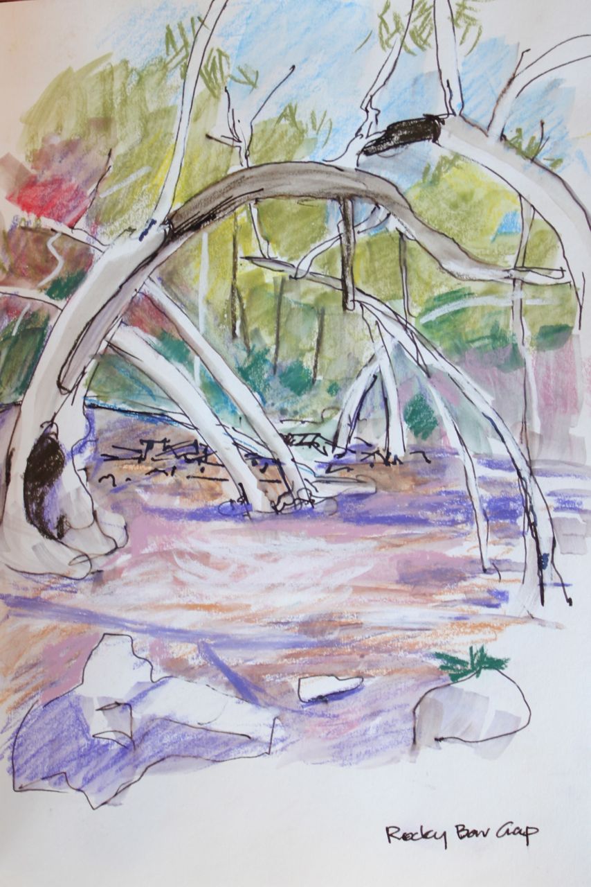 Rocky Bar Gap Published August 1, 2012 at 854 × 1280 in Larapinta Trail Sketchbooks Arching trees define an ancient meeting place Like Loading...