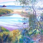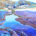 The landscapes, even the large canvases are all initiated and the colours realised on site. This is possible because of my working methods using traditional soft pastels and a quick drying medium. A combination of solid pastel strokes and transparent glazes using pastel pigment with acrylic medium allows me to put down colours as I experience them in place. The ambient light while the work is in progress is naturally incorporated into the painting.