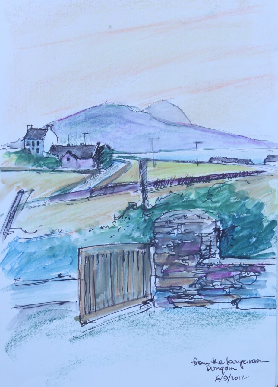 IMG_1855 Published October 15, 2012 at 922 × 1280 in Ireland Sketchbook from the Lounge room Dunquin Our friend’s cottage is beside the inevitable brook and looks across fields to the Blaskett Islands Like Loading...