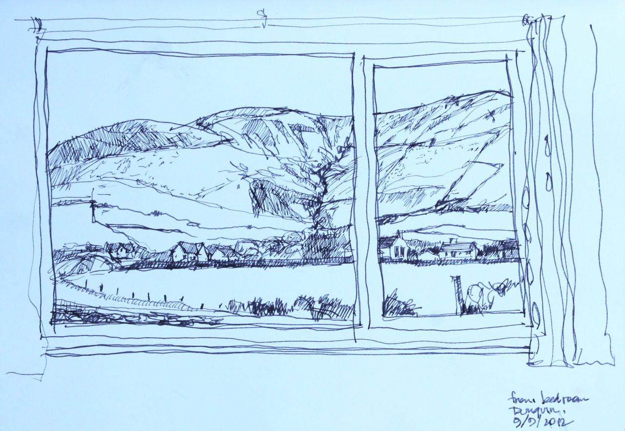 IMG_1862 Published October 15, 2012 at 1280 × 883 in Ireland Sketchbook view from the bedroom, Dunquin The mountains behind are the source of the brook you can hear outside the window. Like Loading...
