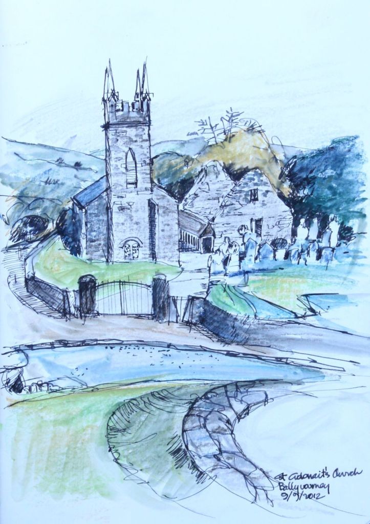 IMG_1864 Published October 15, 2012 at 904 × 1280 in Ireland Sketchbook St Gobnait’s Church Ballyvourney A beautiful collection of buildings on an ancient site complete with holy wells. Like Loading...