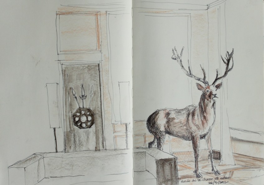 PAR18 Published October 17, 2012 at 1280 × 896 in Paris Sketchbook Musee de la chasse et nature This truly bizarre museum is partially funded by pro hunting groups, yet manages to tread a fine line, and present displays in thought provoking and frequently confronting ways. Like Loading...